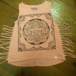 Both items Girls Size 4-Top: Lucky Brand Sleeves Shirt with fun print on front and fringe on the side. Bottom: Paper Denim & Cloth Denim shorts.