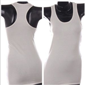 Get a little flirty at that holiday party and be Santa's favorite Ho! Hehe! Racer back style tank with stretch. Fitted style. True to style. Third picture shows length sample. Great with leggings. 95% rayon, 5% spandex. True to size.
