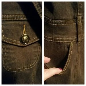 Long gorgeous coat. Decorative buttons up the front. In excellent condition. It did not come with a belt when I purchased it. 33" total length. 18" across from armpit to armpit laying flat buttoned. 24" sleeve length.