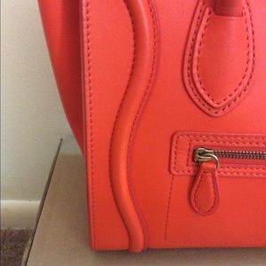 Orange Celine Micro luggage tote in amazing condition. AUTHENTIC and will be verified by posh concierge. The Barneys tag is still attached to the inside of the bag and adds more proof towards authenticity of item. The date code is posted as well. It is smooth leather and in great condition. It's the micro size which is MUCH rarer and harder to come by as compared to the mini luggage.. always been stored in dust bag (included) and with tissue paper so the bag has retained its impeccable shape