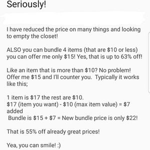 Just a heads up I have a special that I just started for this month. Anything that is $10 or less you can bundle 4 of those items and offer $15 for them all. Just saw you liked something that qualified for that deal and figured I would letcha know!