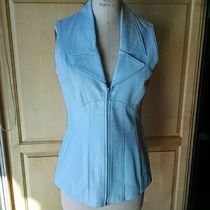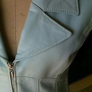 Pale blue Vakko leather vest