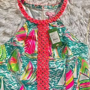 Lilly Pulitzer You Gotta Regatta Sasha Dress๐ด๐๐ดThe Sasha dress is a printed straight shift dress with neon lace trim. With flattering cut in armholes that show of your shoulders and a hidden back zip, the details on this dress are beautifully executed and perfectly placed. - Shift Dress With Cut In Armholes And Top Applied Lace On Neckband And Down Center Front. - 19" From Natural Waist To Hem. - Vintage Dobby - Printed (100% Cotton). - Machine Wash Cold. - Imported. ๐๐No Trades๐๐