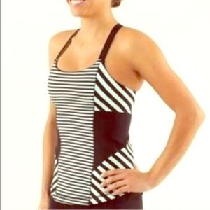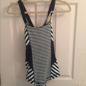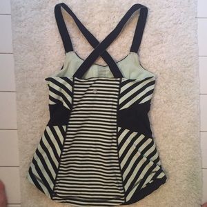 gorgeous slim fitting lululemon workout top that crosses in back! Very unique and in great condition size SMALL