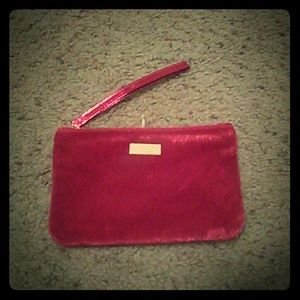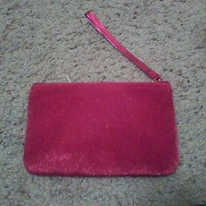 A dark pink almost red color with some sparkles. Perfect for travel.