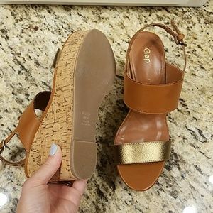 beautiful cognac gold tone leather wedge, size 6.5