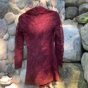 Stone cold fox maroon Filmore wrap lace dress. This mini dress is a lace red / maroon color in size small / X-small (xs / s). Brand new with tags. Bought from planet blue and haven't totally decided if I want to give it up, so snatch it before I change my mind!
