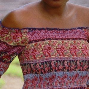 Prairie princess floral off-shoulder midi dress
