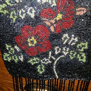Fringes, Velet Navy back , light blue and red flowers decorate this bag , Offers Welcomed ๐I bought two