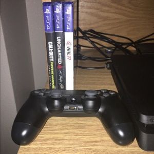 Used 3 times. Comes with NHL 17, Call of Duty infinite warfare/Cod 4 remastered, and unopened Uncharted 4. Comes with all wires needed and one controller.