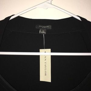 NWT Black Ann Taylor Top in size 14. The short sleeves are curved & ruffled details are present on each armhole and sides. Really great 4: work, church, going out to a dinner or any other event requiring a casually nice TOP... Includes 1 FREE GIFT! ๐โจ๐โจ๐