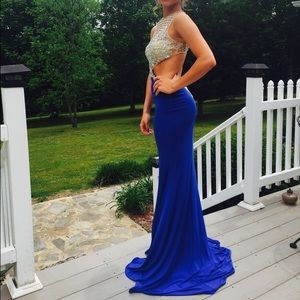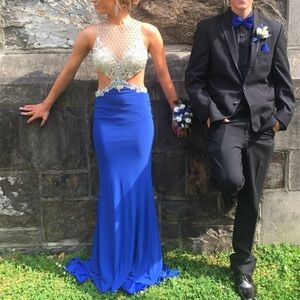 Very glamorous prom dress by Alyse-Paris. Size 2. Worn once. Comes with bag originally purchased in. Lauren is 5.7" with 3" heels on in photo.