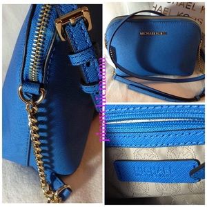 โค๏ธPRICE IS FIRMโค๏ธ This rare to find. Cindy Large Saffiano leather done crossbody in heritage blue is hard to find. Brand new with the tag. You get the wrapping paper and everything it came with. Sorry no dust bag ๐ 9.5"x5 1/4"x2 1/4" inside has 1 slip and 1 zipped pocket. 24-26" strap. Top zip closure. Gold tone hardware. Smoke and pet free home. Let me know if you have any question.