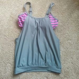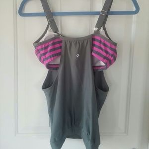 The Next Lined Up Double Up Tankini receives a new design as the Next Barre to Beach Double Up Tankini! This best selling 2016 swimsuit features a supportive, built-in sports bra with adjustable straps. Wear it with yoga pants for running errands or out to the pool. Color is called berry