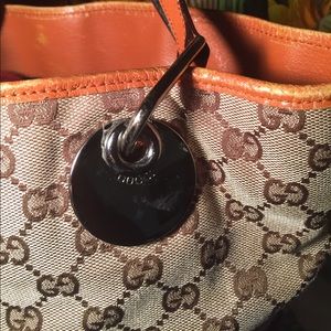 Authentic Gucci- Good condition- Sz 13x14- Missing 1 prong at bottom- minor Discolorations around top rim- Silver hardware- Please view all pics- Very nice bag!
