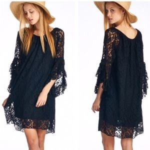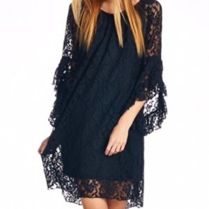 Feminine, sexy, stretch lace dress with round neck and split bell sleeves. So pretty! Very comfortable, lined. ♦️1X: bust 46" hips 55.5" length 36" ♦️2X: bust 48" hips 57.5" length 36.5" ♦️3X: bust 50" hips 59.5" length 37"