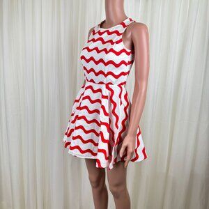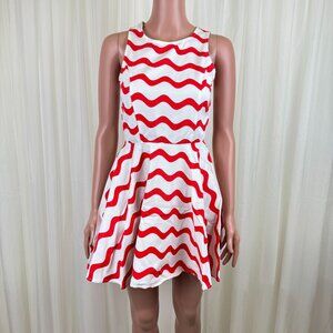 Women's Signature8 Fit & Flare Orange & White Wavy Stripe Skater Dress Sz Small