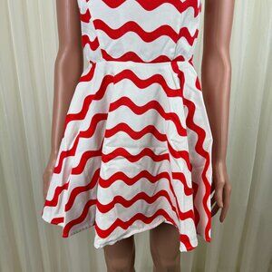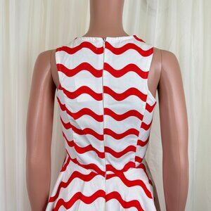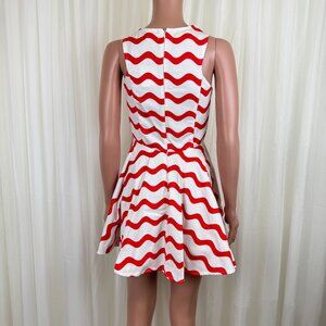 New Women's Signature8 Fit & Flare Orange & White Wavy Stripe Skater Dress Size Small