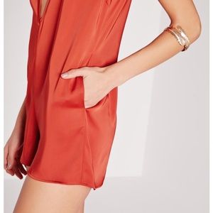 Missguided Orange Satin Plunge Romper- worn once 😘 listed in a green color also!