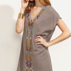 BRAND NEW!! Gorgeous White Maxi DRESS Coverup with Intricate FLORAL Embroidery. Kaftan Style with wide sleeves, & loose, easy fit. V-neckline. Colors: White, Taupe.