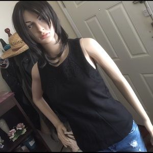 Pretty black top lightly worn. Sleeveless peplum, in very good condition. Final and firm price