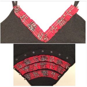 Brand new with tag. Grey V neck and plaid ruffles. Cotton/elastane blend. Back ruffles detaches with snap buttons. Real jingle bells that jingle πππ