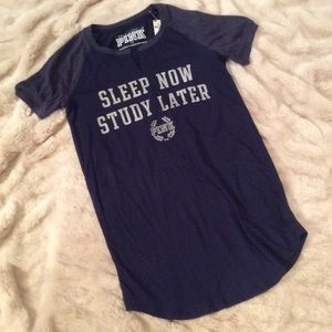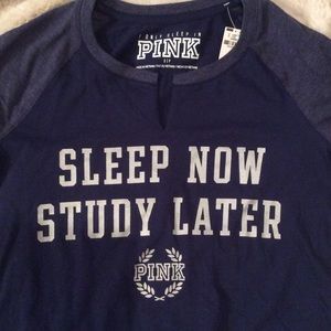 Brand new sleep shirt by Victoria's Secret PINK. Navy with navy marled sleeves and silver "Sleep now study later" graphic.