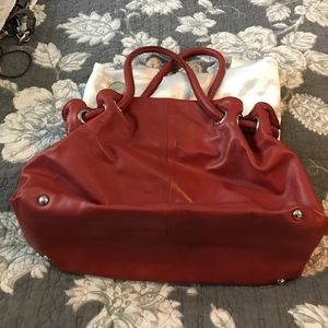 Red leather bag with dust bag. EUC.