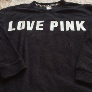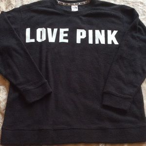 Brand new French Terry sweatshirt by Victoria's Secret PINK. Black with white Love Pink graphic.