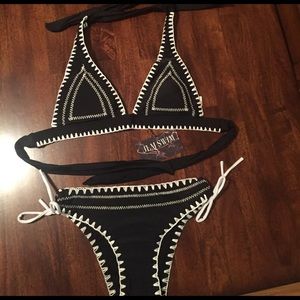MEDIUM LEFT•Black & White Embroidered Bikini•