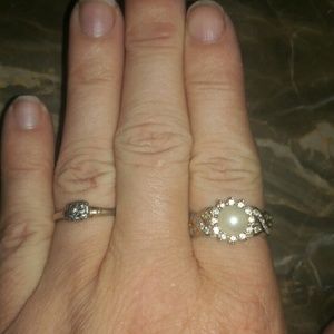 Purchased from Kay in 2005. This is a heavy channel set diamond and pearl ring. So pretty on! This is a very expensive ring and it has been worn very little. I can take more photos if you would like. Please ask any questions. Thanks!