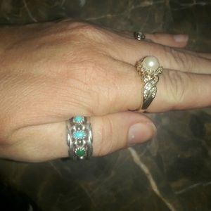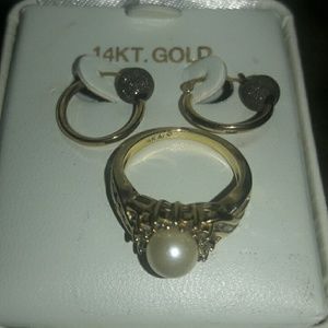 Pearl 14k solid gold diamond sz 7 ring EUC gift