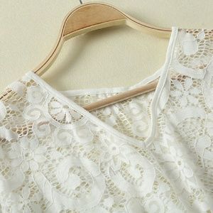 Summer Women Swimwear Cover Ups Crochet Beach Dress Tunic White Floral V Neck Beachwear Women Bathing Swimsuit Cover Up