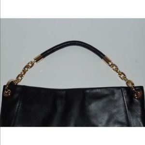 Gold tone hardware Approx 9" strap drop Zip top. NO accessories included. 12"Lx12.5"Hx3"W