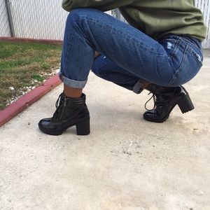 High rise distressed jeans work patches and cuffs. Fits true to size. I'm wearing a size 4 (27) Wear with your favorite tee or shirt. Brand new with tags/NO trades/sizes 26 and 27 available