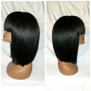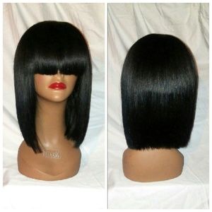 Brand new custom 100% human hair razor cut bob with full bangs wig cap.