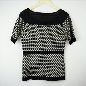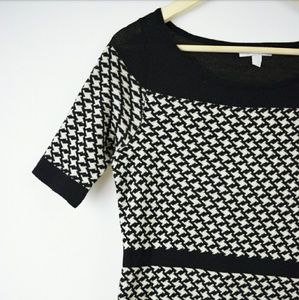 Black and cream houndstooth sweater from New York & Company. Half sleeves. Black stripe around the middle accents the waistline. Beautiful and classy. The material on the shoulders is slightly more see through then the other material. Lightly worn and in great condition! Size small. Willing to consider offers, I love negotiating! Bundle to save!