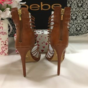 SALE LAST PAIR! REDUCED TO $40!!! SIZE 6 LEFT ONLY!! NIB Cognac Color. Ultra-hot booties flaunting a gladiator look with ankle-to-toe straps, plus a chic laser-cut vamp and scallop-edge counter. Sexy, sky-high stiletto heels. Exposed back zip closure.