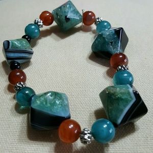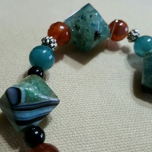 Glass Beaded Bracelet that one size just about fits all. It always grabs everyones attention when I've worn mine out in public. Beautiful color combinations also. Feel free to ask any questions before purchasing. Thanks for shopping my closet!