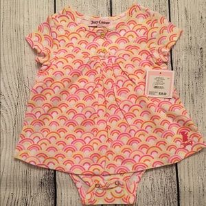 NWT Adorable rainbow dress with orange pink, and yellow. There is a snap attached onesie and all one piece. 3-6 months
