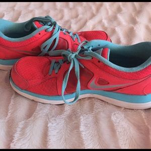 Dual Fusion, worn in but a lot of use left! Neon orange and turquoise.
