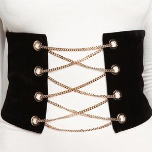 Black velvet gold chain up belt. Make a statement with this amazing belt. Amazing quality. No trades. ‼️PRICE FIRM‼️