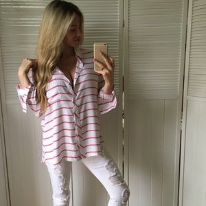 Love this top, I had to keep one in both colors. So classic and versatile. Silly soft, lays beautifully. Full front bottom-down, collar, buttons at wrists and 1 front chest Pocket. Great brand, good quality ππΌ Also available in Blue