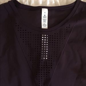 Chic and comfortable top. Beautiful aubergine, rich plum, eggplant, black cherry type of color. Can go from studio to street. 2-in-1! The cutouts look fantastic on and it's just a subtle hint of sexy.
