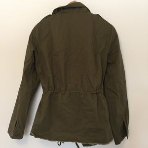The perfect utility jacket to add to any outfit! Button sleeves, button flaps at shoulders, distressed hem, zip front closure. Two pockets at each side. You can sinch the waist inside the jacket and create shape! Definitely an item to add to your wardrobe π. NWOT. 27" shoulder to hem & 19" underarm span. 100% cotton, super soft! Size: Small- 17.5" underarm span and 26.5" shoulder to hem. Medium - 19" underarm span and 27" shoulder to hem.