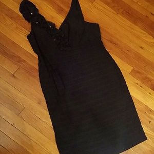 Worn only 1x in great condition. No rips or stains. Has two shoulders but only one has floral accent on it. Stripe body. Beautiful party dress