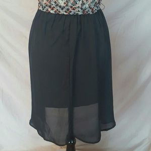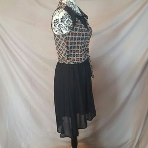 Brand new boutique dress (does not come with tags)! Size Small. The top is a light, chiffon type material with plaid print. Faux wrap style bust with sheer black on the top. Waist tie. The skirt is lined black with high low style. Very cute! No returns/trades!