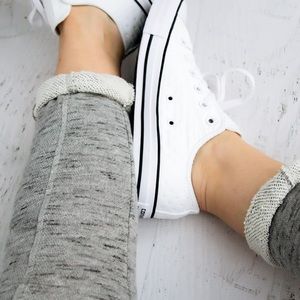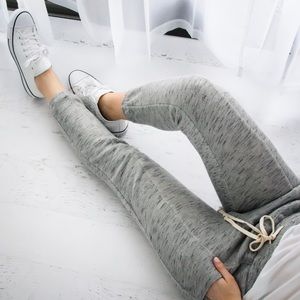 Back in limited stock! Last one in each size◽️Favorite joggers in an amazingly soft french terry material! Heather gray with creme drawstring. Adjustable tie waist and 2 front pockets. Elastic bottoms - wear these long, scrunched or rolled! I am modeling S. Cotton rayon poly blend, nice easy stretch. Premium quality. New. Matching top also for sale.