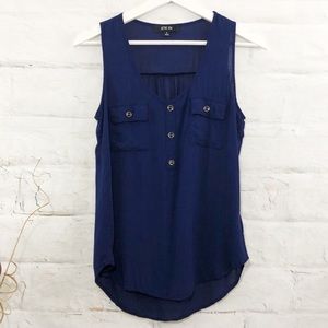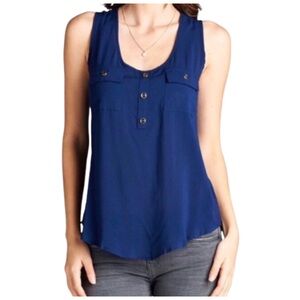 Cute thin lightweight thin tank with buttons in the front. Fake pockets. Perfect for hot weather. I wore these in SE Asia where it's really hot and they were absolutely perfect for that. Other colors available in my closet!