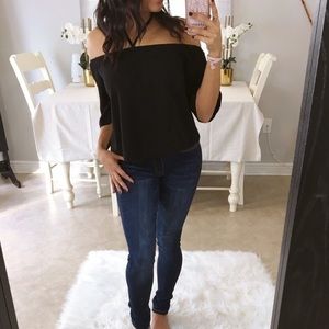 Soft and smooth, this top is so easy to pair with any bottoms. Stretchy elastic wraps around your shoulders to stay in place. Neck detail goes from the front to the back so there is no tying👌🏼 Paired with my "slim" dark wash jeans.